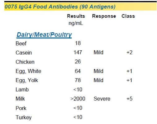 IgG4 food antibodies identified in the serum of a 60 year old woman with migraine headaches. Removal of these foods (especially egg) resulted in a significant reduction in migraine frequency and intensity.