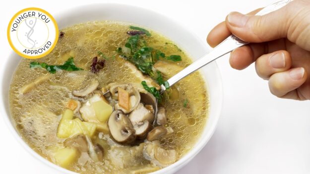 This soup is nothing short of an epinutrient extravaganza! Yes, it has beef liver, but it’s mixed with turkey inside a delicious meatball, so it’s not an overwhelming flavor. There is some chopping involved, but once that’s done, your labor is basically over and you’ve got five additional servings of leftovers (or four, if you’ve cooked…