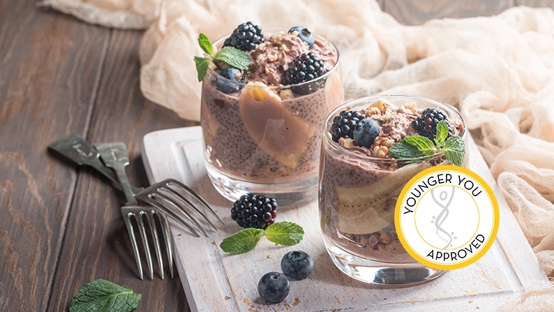Raspberries, blueberries, cacao, chia seeds and maple syrup contain a plethora of plant phytonutrients with health-promoting properties, including the ability to neutralize cell damaging free radical molecules, the unstable compounds that form from factors like stress, pollution and an unhealthy diet.