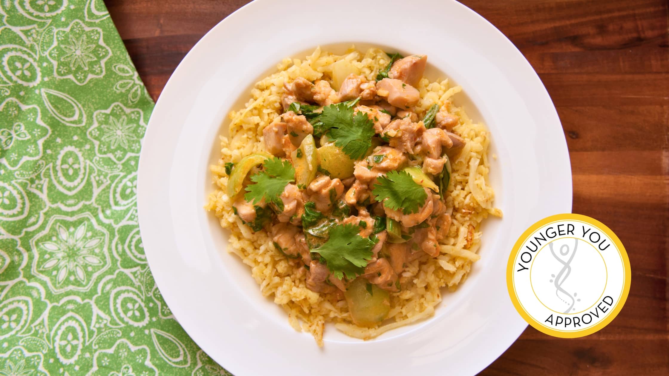 This is a great, family-friendly weeknight meal – the sauce melds with the cauliflower rice in a way that even picky eaters shouldn’t care that it’s not actual rice. Or, if you’re cooking for one, it’s tasty enough that you’ll happily eat it a second time for leftovers later in the week. And of course it is packed with longevity-promoting epinutrients. From the prebiotic-rich and immune-supporting garlic and onions, to the amino acid and B vitamin-rich chicken, this recipe will surely boost your health and longevity.