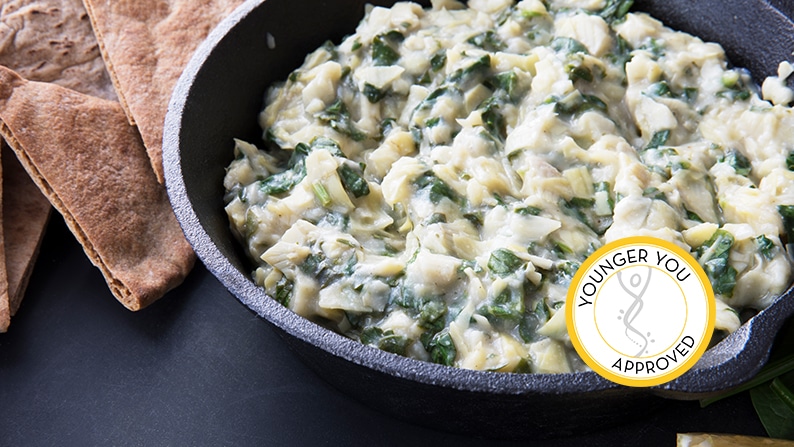 Cashews work their magic again in this recipe to create that rich, luscious background texture. This recipe combines potent detox and epigenetic superfoods like garlic and onion with folate-rich spinach and artichokes. Cynarin, a phytonutrient in artichokes, stimulates bile flow for enhanced absorption of fat-soluble nutrients like vitamins A, E, K and beta-carotene. Healthy bile flow also helps to eliminate toxins and excess cholesterol, helps balance hormones, and supports a healthy microbiome.
